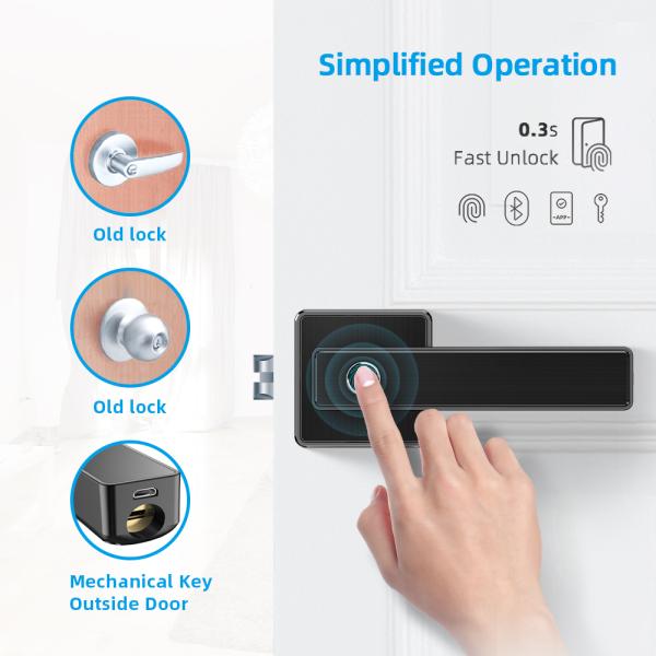 Smart Biometric Thumbprint Room Door Locks / Electronic Front Black Door Handle Lock Images |